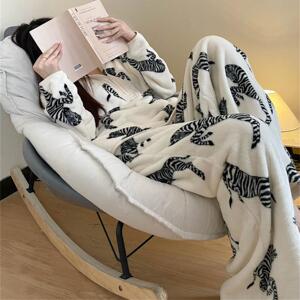 法式轻奢斑马印花法兰绒睡衣秋冬季女士加厚珊瑚绒家居服套装大码