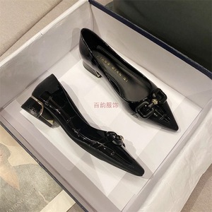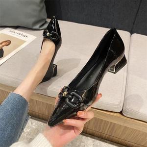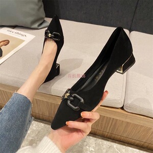 2025年夏季新款百搭粗跟单鞋女尖头大码不累脚黑色工作鞋通勤女鞋