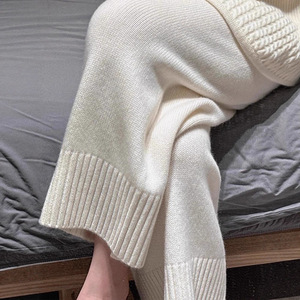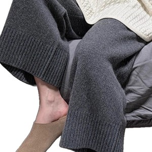 灰色针织阔腿裤女2025秋冬新款高腰垂感宽松显瘦休闲慵懒直筒裤子