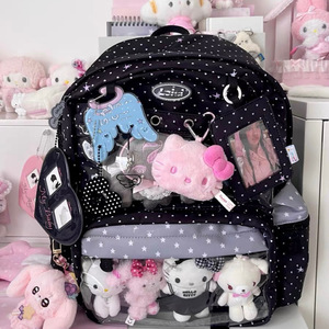 波点初中双肩包女生学生大容量二次元双肩透明吧唧痛包背包书包