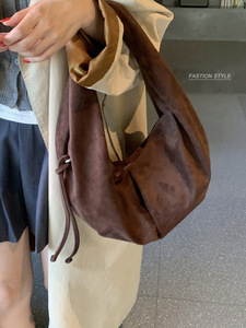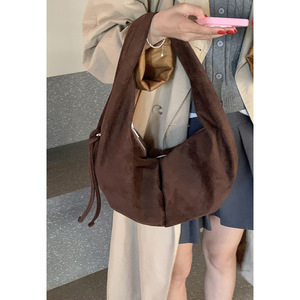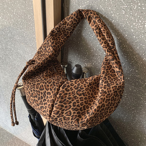 复古麂皮绒豹纹新月包包女2025新款秋冬时尚腋下包大容量手提包