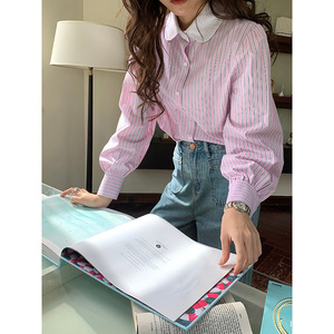 【恋爱博物馆】歌铭复古竖条纹衬衫女2025秋季新款通勤上衣X1189F