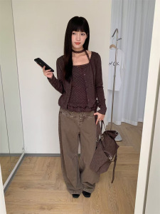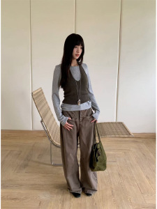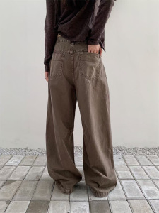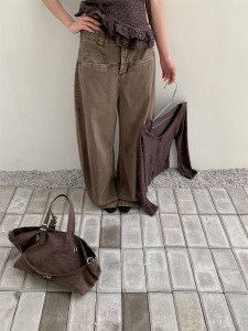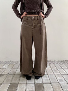 誉一新款2025秋季美式复古廓形弯刀牛仔裤女一字口袋阔腿长裤1353
