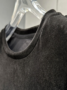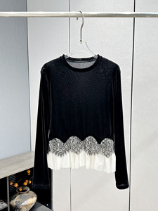 深圳南油圆领套头长袖设计感小众丝绒拼接蕾丝上衣女2025秋季新款