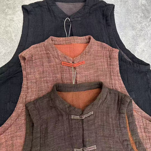 2025秋季新品新款双层汉麻包边盘扣马甲上衣