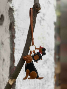 手工制作皮具 可爱小狗真皮包挂件植鞣牛皮拼接男背包女包挂饰