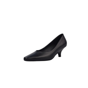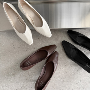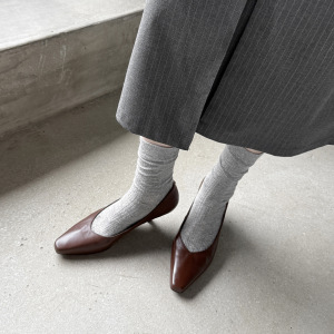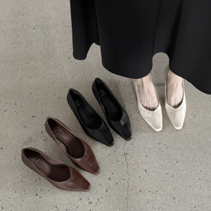 韩系简约通勤小牛皮工作鞋2025秋细中跟小方头真皮浅口职业单鞋女