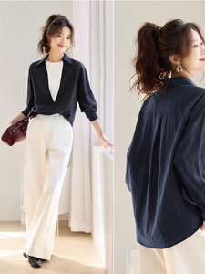 欧货气质简约深V领长袖衬衫女小众不撞款宽松显瘦百搭叠穿上衣潮
