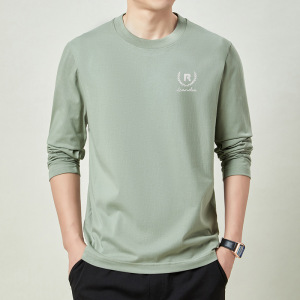 100%纯棉长袖t恤男士秋季新款圆领打底衣宽松休闲全棉卫衣男体恤