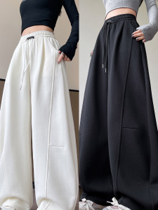大码弯刀阔腿裤女2025新款秋季胖妹妹mm高腰宽松显瘦直筒运动卫裤