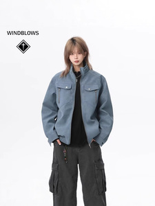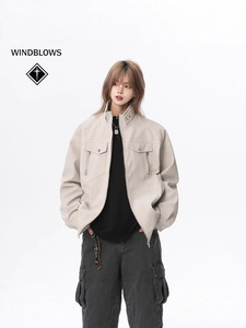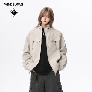 WIND BLOWS美式复古立领工装夹克2025春秋季男女装潮牌PU皮衣外套