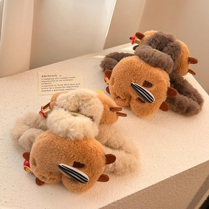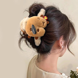 秋冬毛绒花生瓜子抓夹女大号可爱气质发夹后脑勺盘发头饰鲨鱼夹子