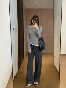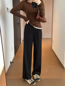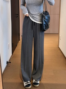 泽黛佳伊M家同款 气质挺阔天丝羊毛混纺直筒版抽绳松紧腰阔腿西裤