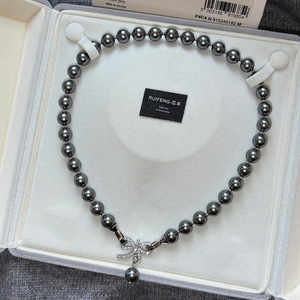 S家真多麻银灰色珍珠项链女法式毛衣链配饰蝴蝶结吊坠高级感颈链