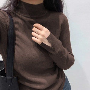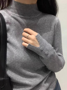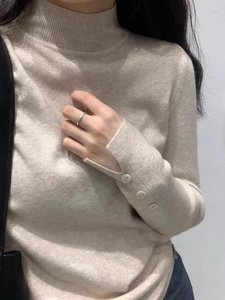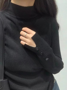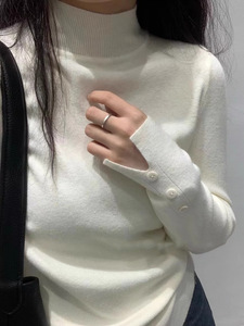 2025秋冬新款半高领羊毛针织打底衫女套头百搭修身设计感内搭毛衣