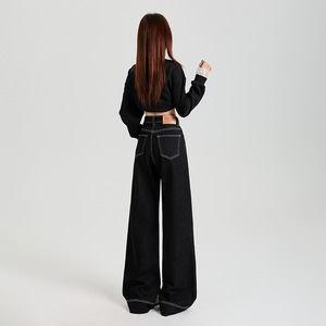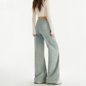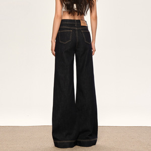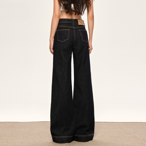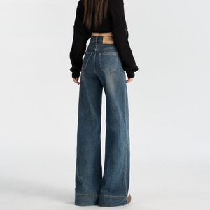丹宁蓝牛仔裤女秋冬2025新款小个子高腰宽松慵懒风深蓝色微喇裤子