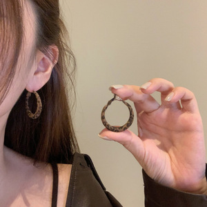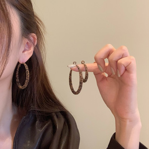 复古港风豹纹丝绒圈圈耳环女高级感气质耳圈耳钉个性辣妹素圈耳饰