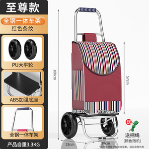 至尊款--加厚不锈钢车架+PU轮+加强底座-红色条纹