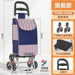至尊款--加厚不锈钢车架-水晶爬楼轮+加强底座-蓝色条纹