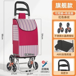 至尊款--加厚不锈钢车架-水晶爬楼轮+加强底座-红色条纹