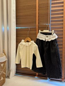 韩版秋冬新款女童宝宝花边领打底长袖上衣甜美洋气蕾丝花边裤套装
