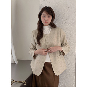 【半暮小香】歌铭高级感小香风外套女2025秋季圆领短款上衣T6963F