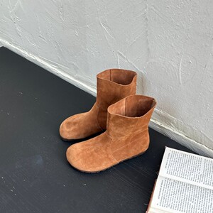 严选复古圆头百搭磨砂皮显瘦短筒靴2025新款软底一脚蹬厚底马丁靴