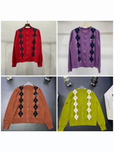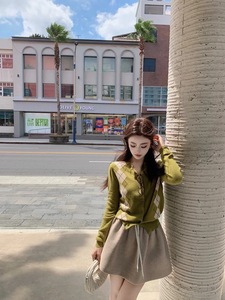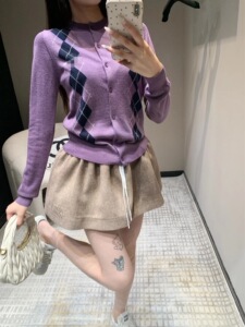 高品质miu家2025秋季新款菱格字母微标复古撞色圆领羊毛针织开衫
