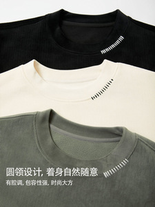 490g重磅加厚圆领卫衣男秋冬季新款美式宽松套头上衣时尚打底衫