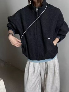 高端撞色格子袖口立领百搭宽松显瘦毛呢夹克女外套2025秋季新款潮