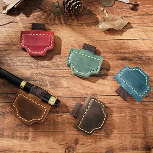 新款亚马逊热销复古牛皮磁吸书签疯马皮加强磁性笔夹分页创意笔插