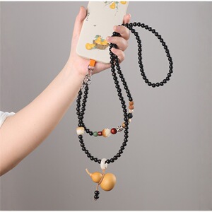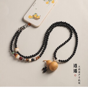 黑檀木天然葫芦把件手机斜挎挂绳手机链串珠斜跨长款可背国风挂饰