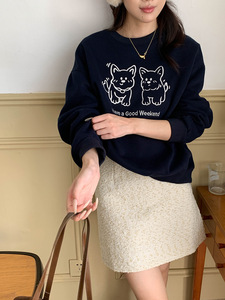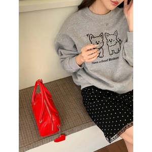 3th Morning 时髦好心情 趣味俏皮小狗刺绣落肩袖卫衣 ZY3321