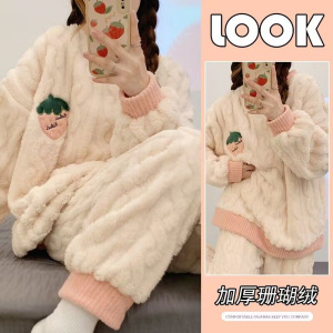 冬季剪花绒加厚睡衣女长袖爆款保暖加厚加绒睡衣加绒家居服女套装