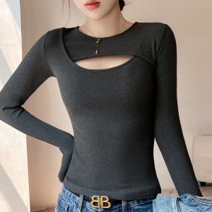 萝卜大叔白色镂空打底衫女内搭外穿2025秋冬新款修身长袖圆领上衣