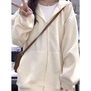 韩版华夫格外套女春秋薄款慵懒风网格开衫冬季加绒加厚连帽卫衣女