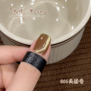束色秋冬瓷白琥珀冰透猫眼胶美拉德金光闪亮玻璃珠美甲猫眼甲油胶