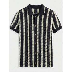 秋季新款跨境外贸 Knitwear 男士条纹短袖空心单排扣