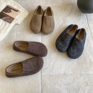 内增高复古毛毡加绒勃肯鞋女外穿2025丑萌加绒呢子一脚蹬毛毛鞋潮