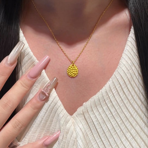 小红书爆款锤纹项链女时尚简约个性圆形吊坠ins气质通勤锁骨链潮