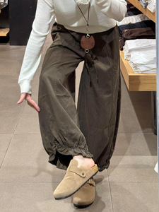 咖色九分花苞休闲裤女秋季大码胖mm宽松显瘦小个子垂感阔腿气球裤