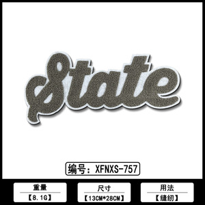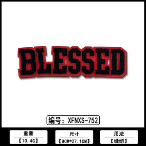 英文条AB毛巾刺绣服装绣花装饰布贴厂家现货批发电脑绣花标辅料