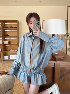 韩系设计感撞色条纹长袖衬衫上衣女早秋小众别致宽松chic气质衬衣