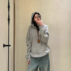 秋冬新款罗家logo刺绣抽绳连帽卫衣宽松灰色休闲百搭男女同款帽衫
