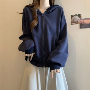 显瘦木耳边上衣胖mm设计开衫外套女2025连帽卫衣感大码款春秋灰色
