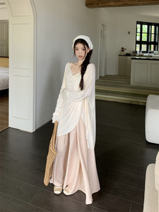 清冷感气质套装女秋季2025新款慵懒风防晒长袖上衣阔腿裙裤两件套