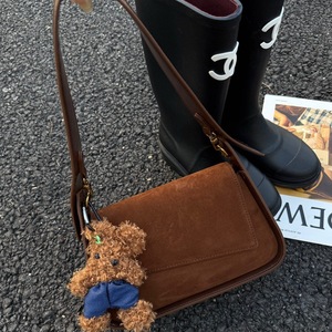 秋冬新款真皮磨砂腋下法棍包时尚百搭高级感单肩斜挎手提包配挂件