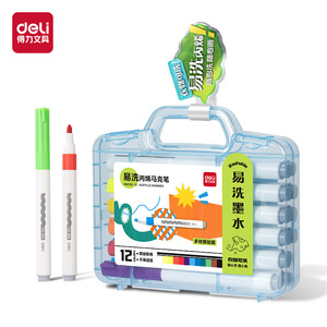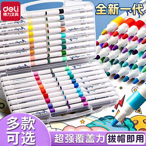 得力可水洗丙烯马克笔双头彩色水彩笔学生儿童美术涂鸦笔画笔套装