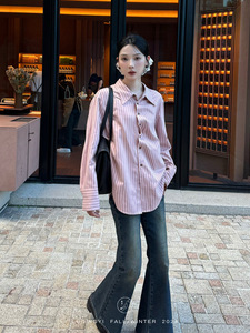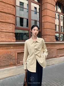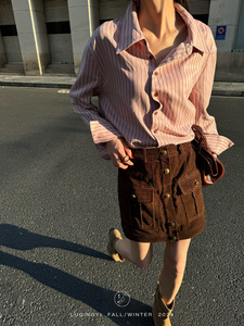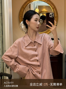 鹭青一【相对论】条纹衬衫女春秋设计感门襟收褶法式防晒衬衣