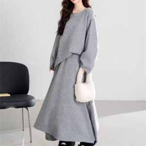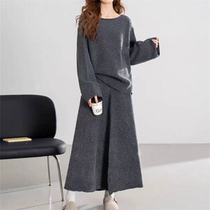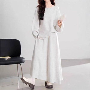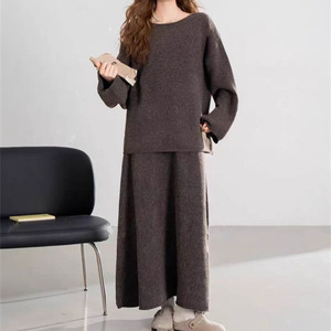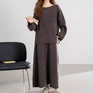 跨境宽松慵懒风套头毛衣套装女秋冬新款气质针织半身裙休闲两件套